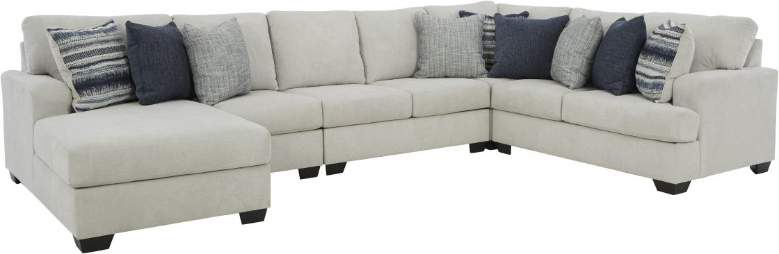 Includes 4 Pieces: Left-arm facing corner chaise, armless sofa, wedge and right-arm facing loveseat