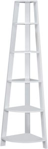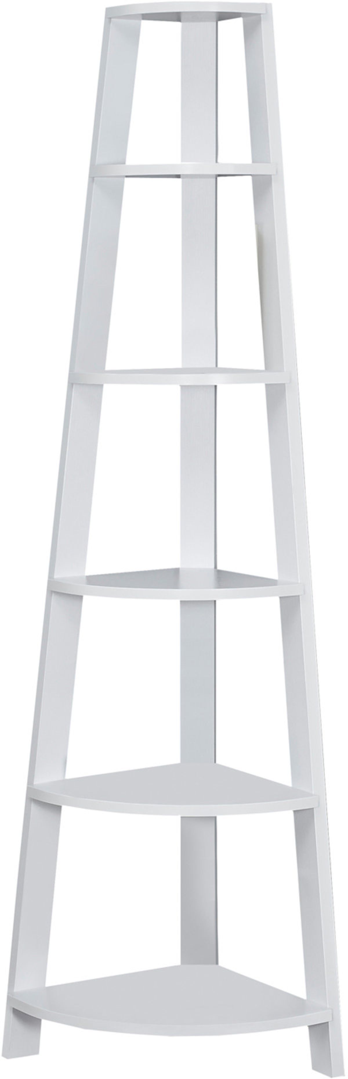 Set up this etagere bookcase easily and let it do its thing! Look how nice the bookcase fits in a corner of your living room, office or bedroom, allowing you to showcase books and all types of decor easily. Make use of a spot that is often tough to work with: the corner. Maximize storage and display with a modern piece that will be sure to help you utilize all the space available to you thanks to 5 fixed tray style shelves. Three sturdy beam legs ensure structural integrity to this corner ladder shelf in white. Anti-tipping hardware is included for further stability.