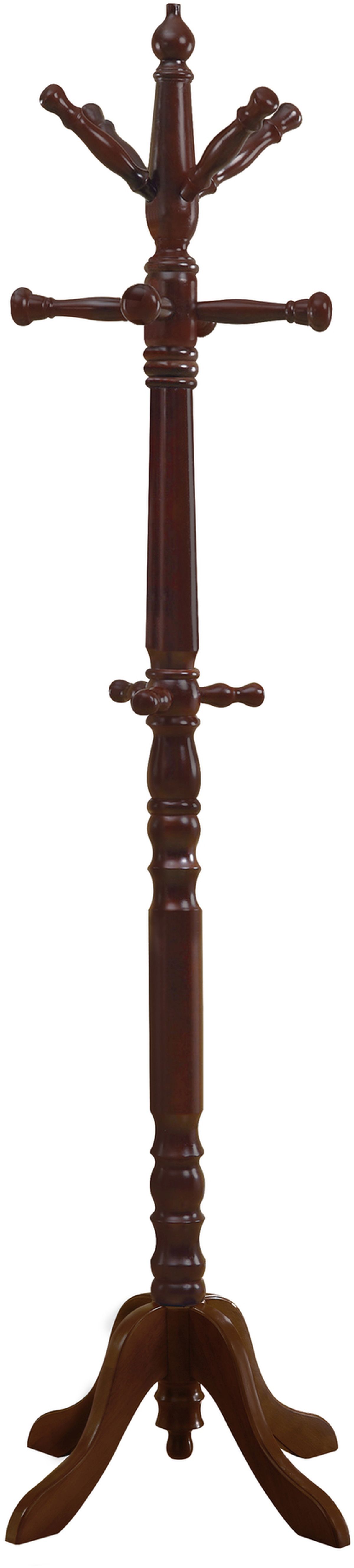 Delivering nothing but functionality and top notch style, this coat rack boasts 11 hanging pegs for all your coats, jackets and hats. Featuring 3 tiers, the coat tree will evenly hold apparel of different heights while keeping everything organized and easily-accessible. Thanks to a solid wood construction in a cherry finish, this is your new must-have at the entrance, living room or even at the office.
