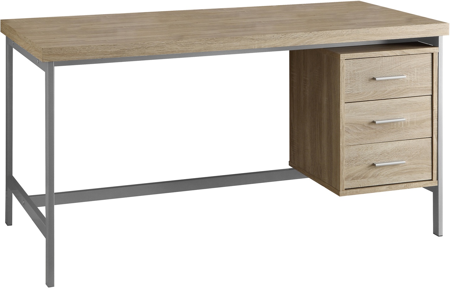 Your workstation needs to be both functional and easy on the eyes. To serve that purpose, this office desk is there for you with all you need to get the job done. A sturdy silver metal frame, 3 convenient storage drawers and a natural pine wood look finish on all sides - A recipe for success! The 60-inch length provides more than enough surface space for a computer, lamp, notebooks and more.