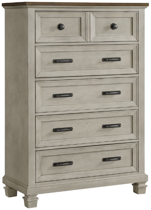 The Farmington Chest blends classic charm with functionality. Its contrasting espresso and white finish adds visual interest to any bedroom. With five spacious drawers, it offers ample storage for clothes and essentials, making it an ideal choice for both style and practicality.Read More