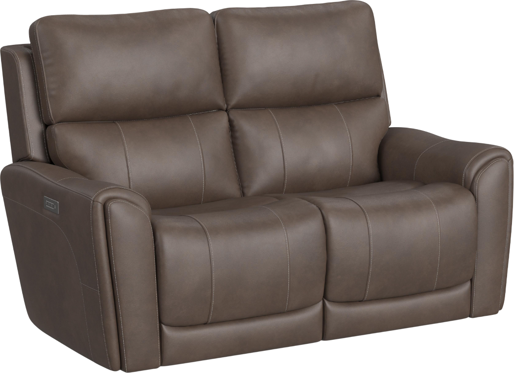 Power up and enjoy secretive perks with the Carter power reclining loveseat. This piece features triple power and our Zero Gravity mechanism, allowing you to customize the recline, headrest and lumbar support on both seats, including reclining to a zero-gravity position for the ultimate comfort experience. This loveseat will be a statement in your home with its genuine leather look that is a durable, easy to clean fabric in two color choices. Flared arms, contoured seats and heavy thread stitching details give it a sleek, yet striking a look. And it all comes with pop-out cupholders in the arms for discreet storage.