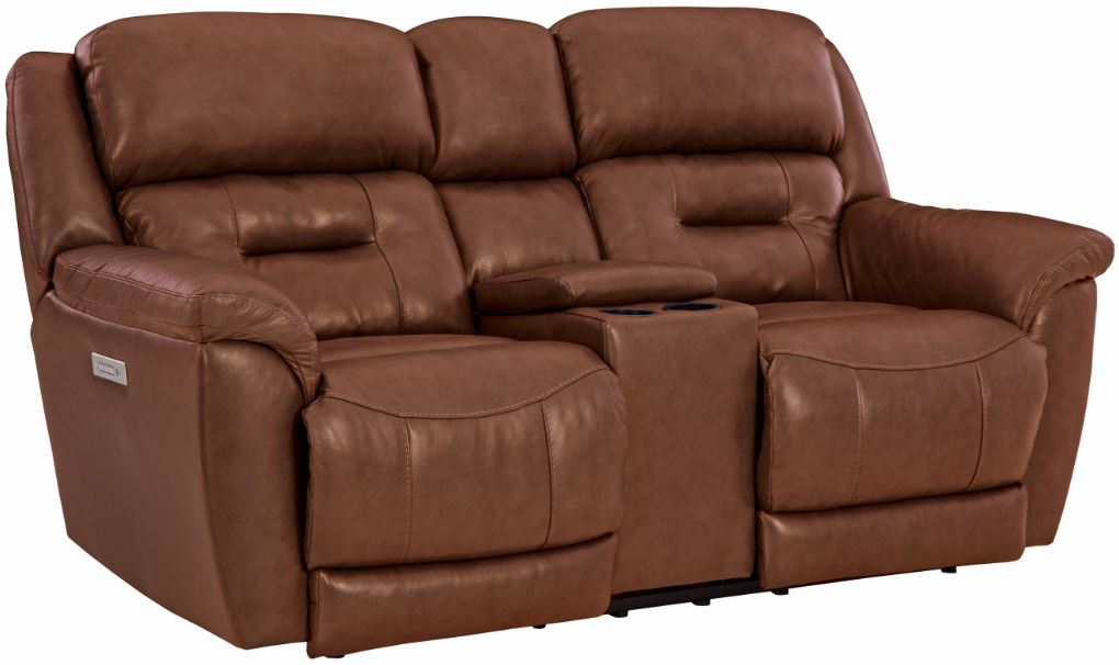 The "Contender" is a sophisticated reclining group in top-grain leather, featuring a power headrest, a power lumbar, and an extended footrest with four extra inches of ottoman height. A top grain, cowhide leather cover and a USB charging port for electronic devices makes this the most stylish and productive seat in the house.Read More