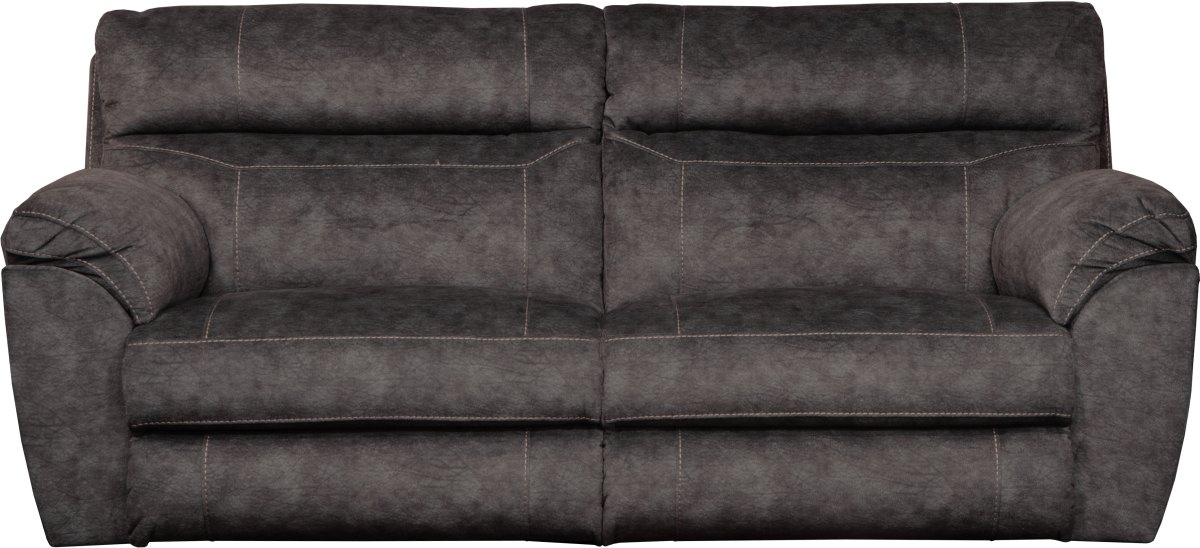 The Canyon Smoke Power Headrest Power Lay Flat Reclining Sofa features a power recliner/power headrest and comfort control panel technology. The soft, thick, printed and embossed suede fabric paired with the Comfort Coil Seating featuring Comfor-Gel creates an extremely comfortable seat.Read More