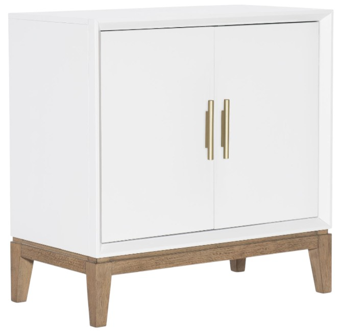 The Legacy Classic Melrose Accent Cabinet features a cloud white finish with desert oak accents. Crafted from hardwood solids and oak veneers, it offers stylish storage with slim golden sand hardware and natural warmth for versatile home decor.Read More
