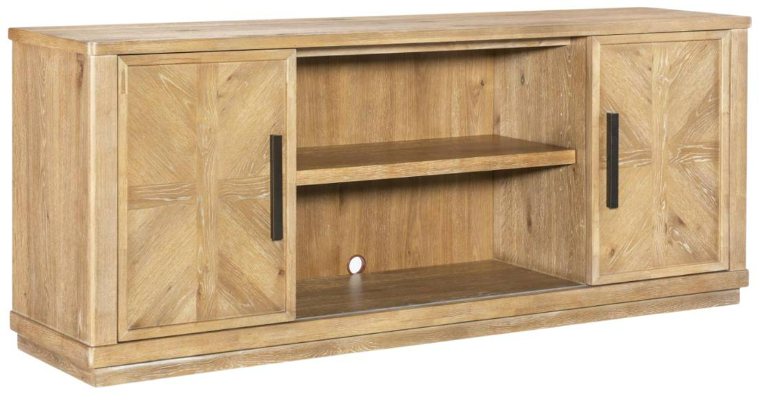 Crafted of select hardwood solids and random match white oak veneer with split heart cathedrals