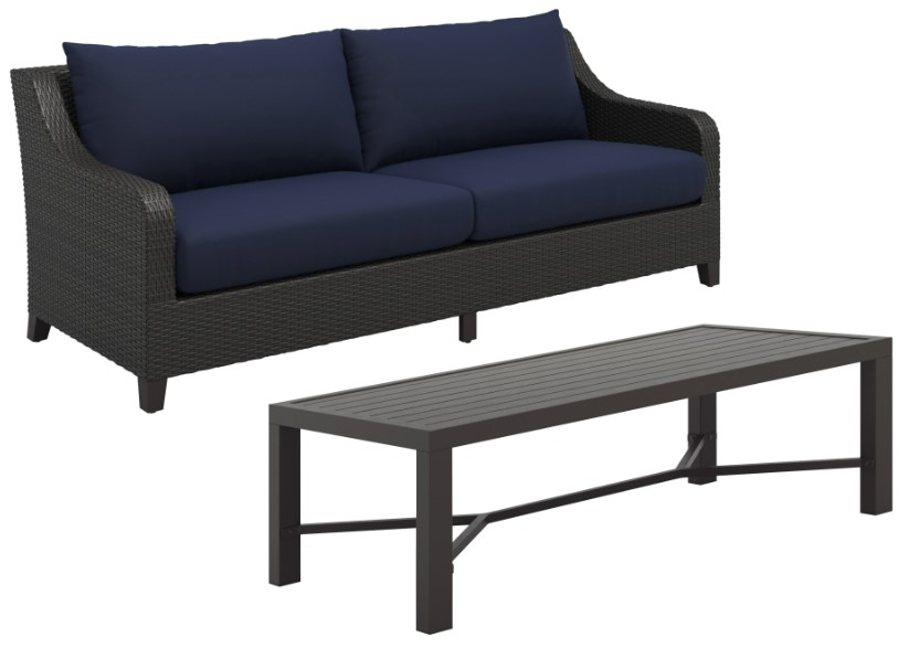 Revamp your outdoor space with the Skye 2-piece 3 seater sofa in navy blue, accompanied by a matching coffee table. Crafted with aluminum frames boasting a baked-on powder finish, this set ensures robustness and enhanced scratch resistance.Read More