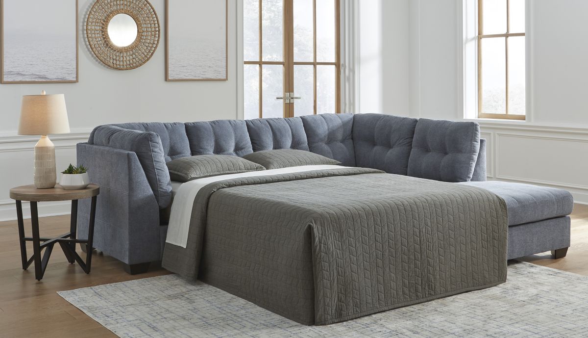 Includes 2 pieces: left-arm facing full sofa sleeper and right-arm facing corner chaise