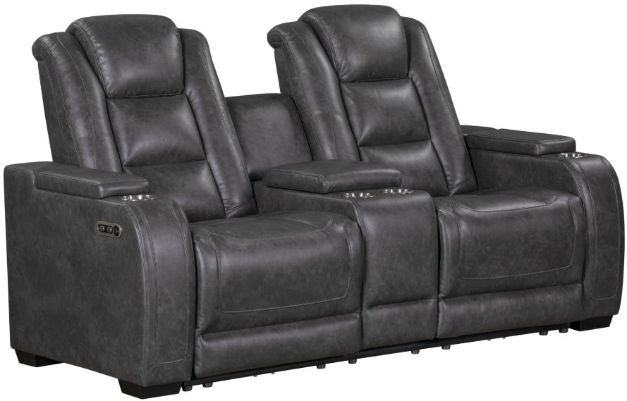 The Chester power reclining console loveseat in brown blends modern style with exceptional comfort and functionality. Constructed with hardwood and plywood interior frames and robust motion mechanisms, this loveseat is built to last, supporting up to 350 pounds per seat. Its rich brown color and clean lines create a contemporary look.Read More