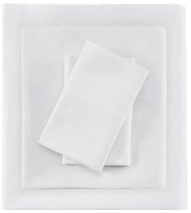 Sleep in the plush comfort of the Madison Park 525 Thread Count Cotton Rich Sheet Set. This solid sheet set is made from cotton-rich sateen weave fabric with a 525 thread count to create a lustrous sheen and smooth hand feel. An included fitted sheet features a 1-inch snug grip elastic around the edge to securely stay on your mattress. These sheets are also Oeko-Tex certified, meaning they do not contain any harmful substances or chemicals, ensuring quality comfort and wellness. Set includes 1 Fitted Sheet, 1 Flat Sheet, and 2 Pillowcases.Read More